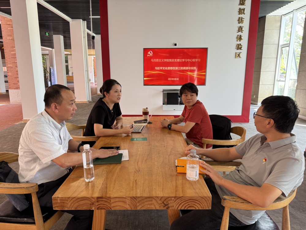 2025年9月3日,马克思主义学院党总支在钱湖校区初心长廊虚拟仿真思政课基地组织开展理论学习中心组专题学习,聚焦“深入学习习近平文化思想”主题,结合《文化的力量》纪录片观看心得展开交流研讨。学院党总支理论学习中心组成员全员参加,党总支副书记孙叶飞主持。