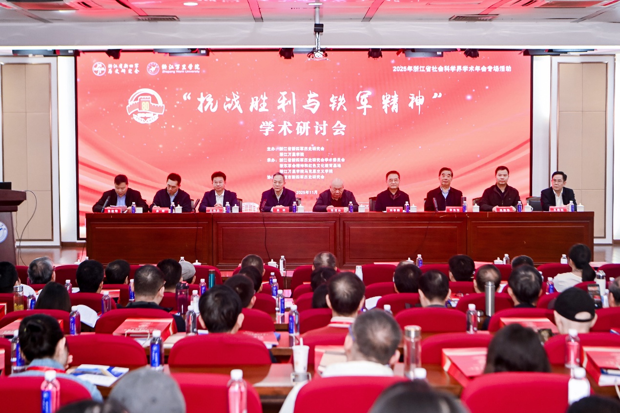 2025年 11月 8日,立冬时节,乍寒还暖,浙江万里学院宁波钱湖校区报告厅内热气腾腾。浙江省新四军历史研究会、浙江万里学院在此共同举办2025年浙江省社会科学界学术年会专场活动——“抗战胜利与铁军精神”学术研讨会。