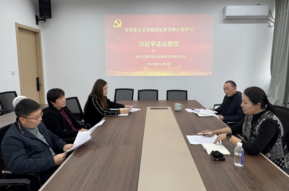 2025年12月1日,马克思主义学院党总支理论学习中心组在钱湖校区53506-1会议室召开专题学习会,集中学习习近平法治思想。党总支副书记孙叶飞领学,学院党总支理论学习中心组成员共同参会学习。