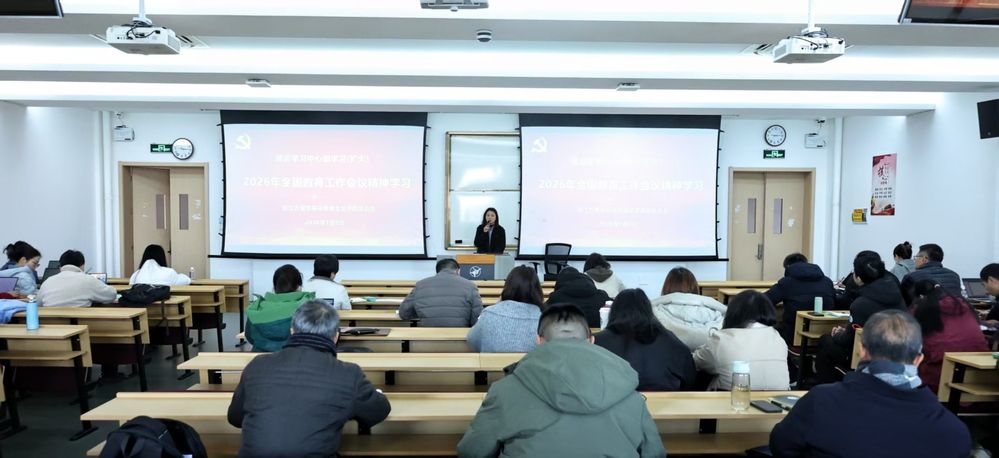 为深入学习领会2026年全国教育工作会议精神,切实把思想和行动统一到党中央、教育部决策部署上来,2026年1月11日,马克思主义学院召开理论学习中心组(扩大)会议,专题学习2026年全国教育工作会议精神。会议由学院党总支副书记孙叶飞领学,常务副院长梁立新及全体教师参加。