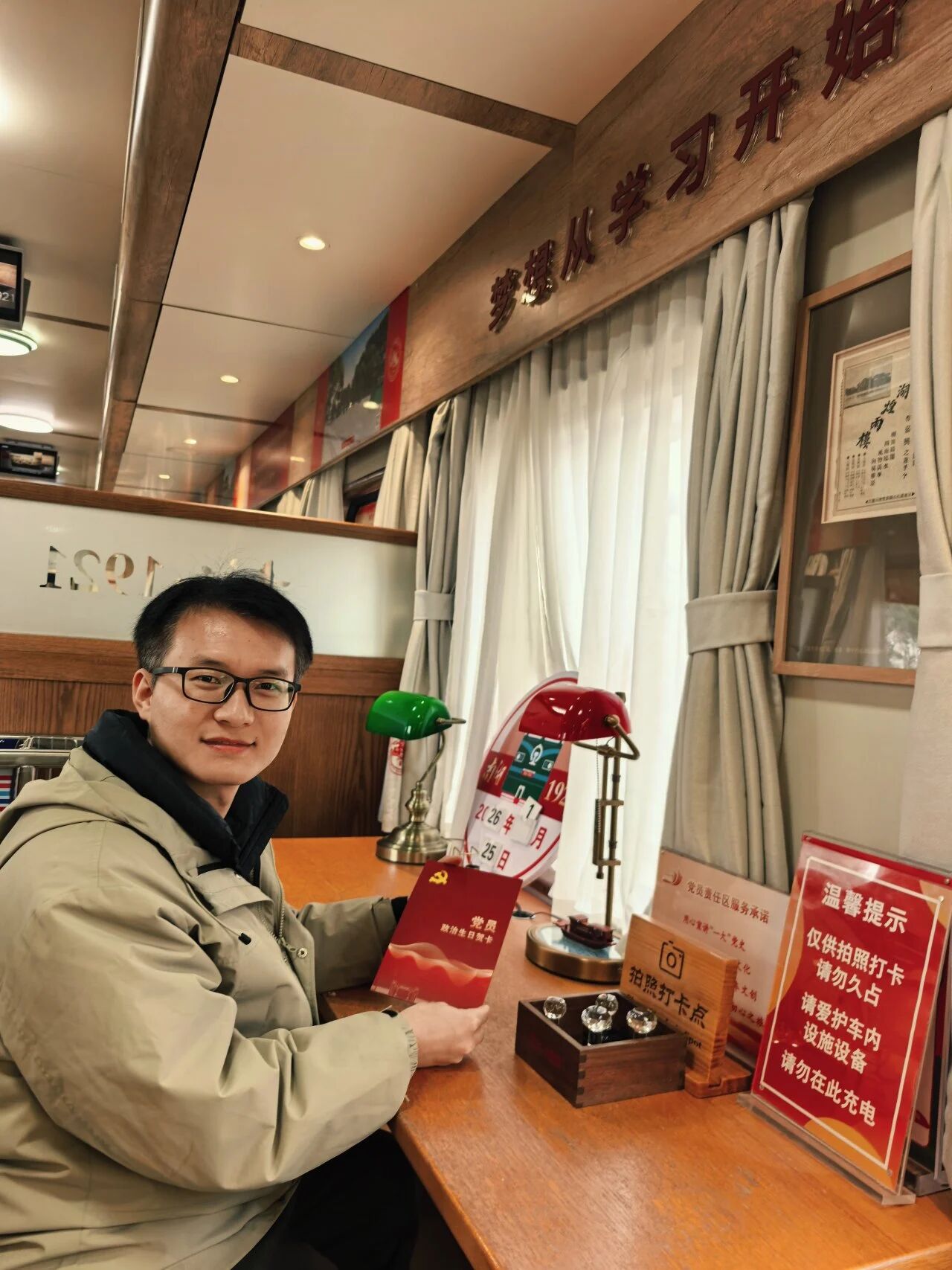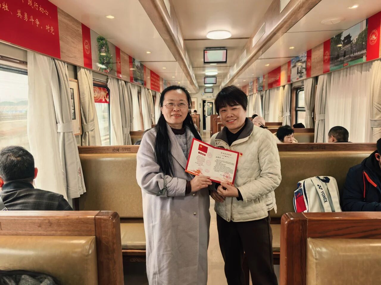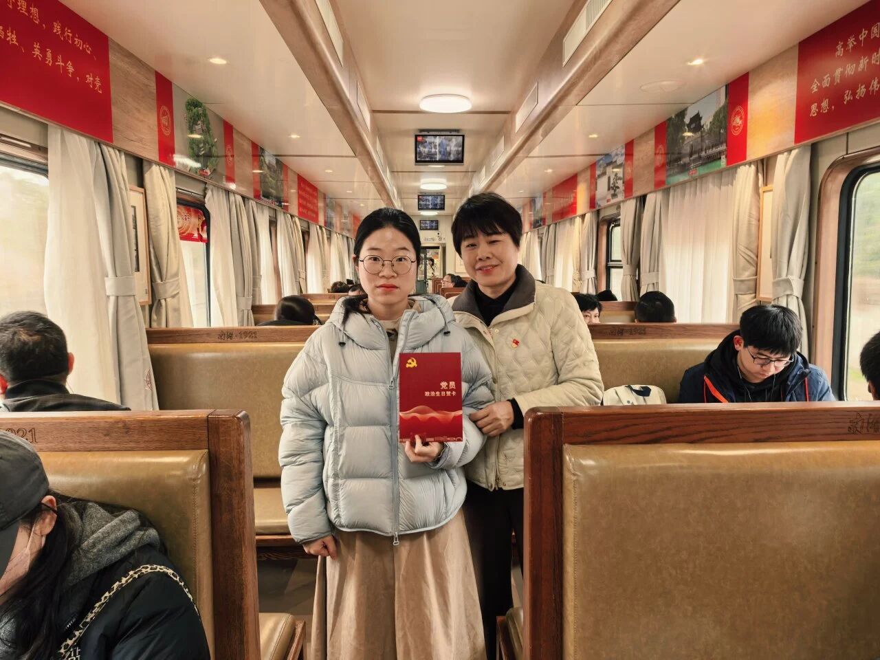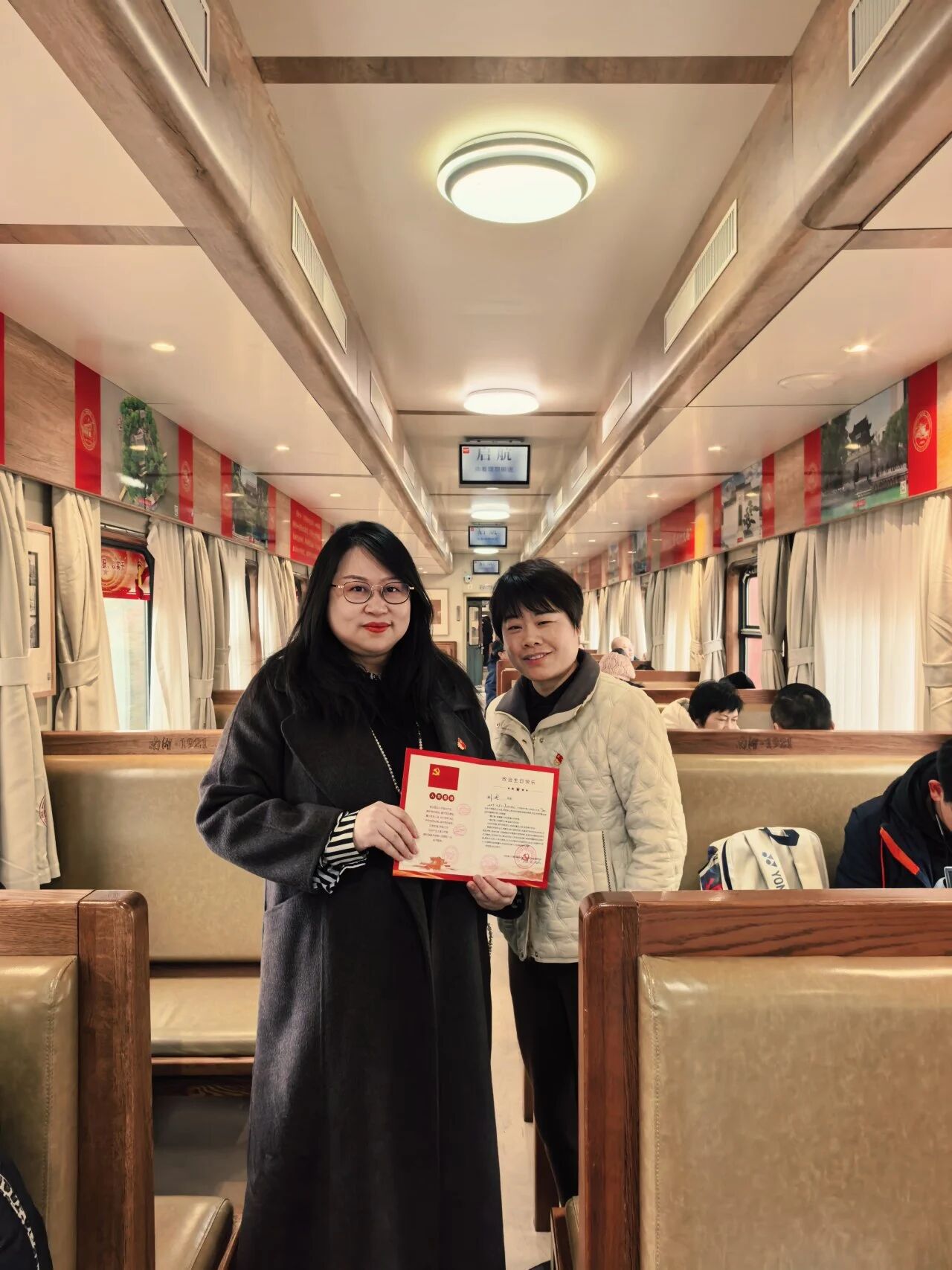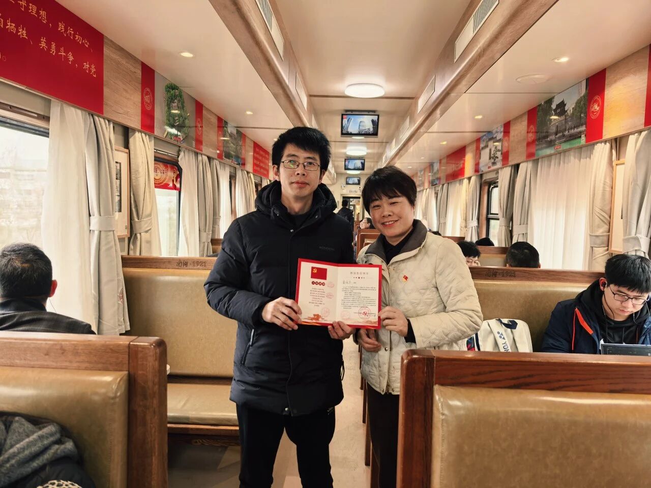 1 月 25 日,研学团队乘坐 “周恩来号” 列车从上海奔赴嘉兴,延续红色研学之旅。列车上,一场温馨而有意义的 “政治生日” 庆祝活动如期举行,全体党员为上半年入党的同志送上真挚祝福。一张生日贺卡、一句殷切寄语,既是对党员政治生命的珍视,更是对初心使命的重申与践行。大家纷纷表示,在新时代“重走一大路” 的特殊行程中过“政治生日”,意义非凡,将永远铭记这份荣耀与责任,在教书育人的岗位上永葆党员本色。