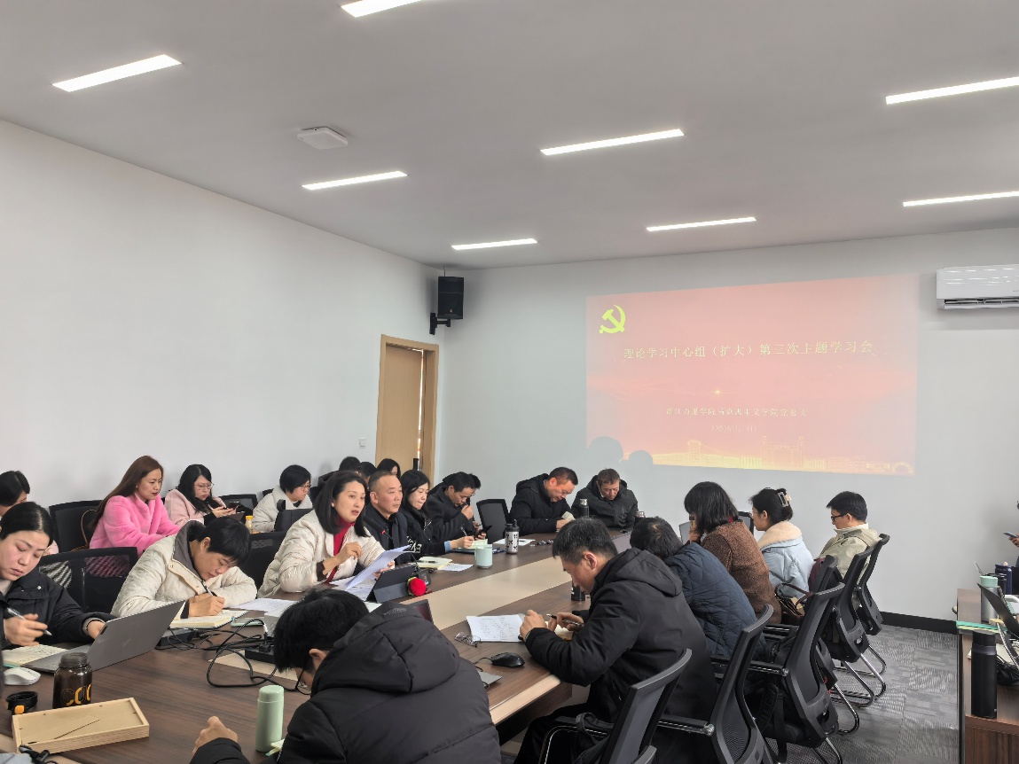 2026年3月4日,马克思主义学院理论学习中心组(扩大)2026年第三次主题学习会在53306-1办公室进行,学院党总支副书记孙叶飞领学,常务副院长梁立新和学院全体教师参加。