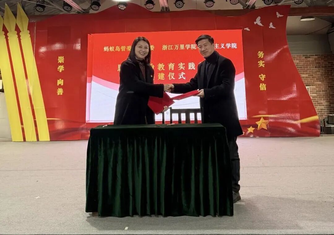 为深入贯彻落实“大思政课”建设要求,推动思政小课堂与社会大课堂的有机衔接与深度融合,深化甬舟一体化协同育人实践,2026年2月4日,我院与舟山市普陀区蚂蚁岛管委会正式签署合作协议,共建“大思政课”实践教学基地。