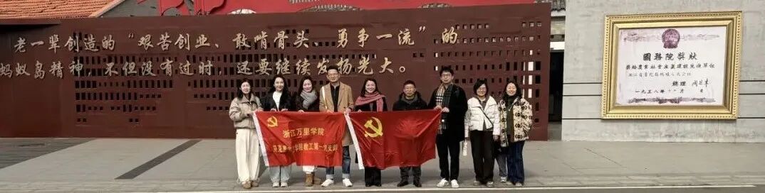 仪式结束后,学院教师代表在管委会工作人员的陪同下,先后参观了蚂蚁岛村史陈列馆、卫生院旧址、全国第一个人民公社旧址及“廿载蝶变・海岛新生”蚂蚁岛精神成果主题展。通过实地参观,教师们近距离感悟了蚂蚁岛的红色底蕴与发展变迁,对蚂蚁岛精神有了更为深刻的理解,也为后续将红色资源融入思政教学积累了丰富的实践素材。