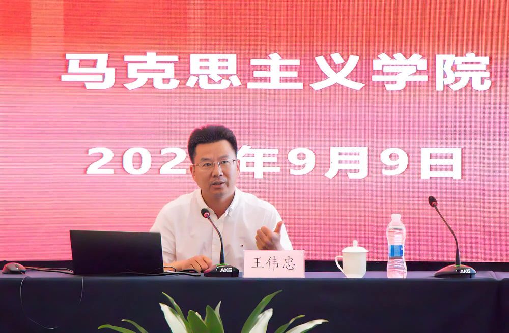 会上,校党委书记王伟忠代表学校党委向全体教师致以教师节的诚挚祝福,并作指导讲话。他指出,过去一年,马克思主义学院在思政课建设、人才队伍建设、学科体系完善和科研平台打造等方面取得了积极进展,呈现出蓬勃向上的发展态势。同时强调,思政课作为落实立德树人根本任务的关键课程,学院要继续凝聚力量、守正创新,把队伍优势和学科优势转化为推动学校高质量发展的强劲动力,并对学院未来发展提出三点要求:一是在党的理论创新阐释上走在前列,把政治优势转化为思政引领优势,在理论研究、课程建设和智库服务中展现更大作为;二是在师德师风建设上走在前列,把队伍建设优势转化为人才培养优势,以教育家精神为引领,锤炼教师政治品格和育人情怀;三是在攻坚克难中走在前列,把重点学院优势转化为发展优势,在学校改革再深化再发展的关键时期,勇担责任,发挥先锋作用。他表示学校党委高度重视并将一如既往地支持马克思主义学院的发展,为教师成长和学科建设提供坚实保障,勉励全体教师以“一辈子备好一门课”的执着态度,实现个人成长与学院发展同频共振,为学校高质量发展作出应有的贡献。
