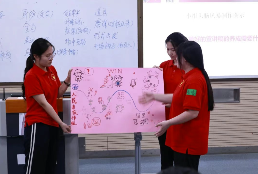 以往宣讲团新成员们的磨课磨稿,大多只是站在台上,将自己的稿子展示一遍后由台下的同学和老师前辈们点评、总结。这样的形式不但效率不高,对于“怎么写好宣讲稿”这一核心命题大部分成员更是一知半解。
