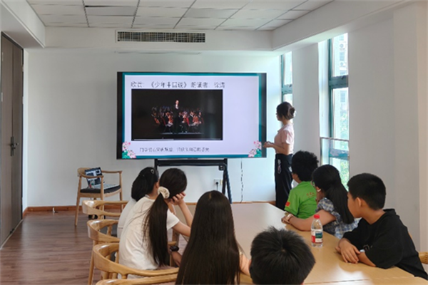 用声音传递情感,以朗诵致敬初心。7月17日上午,一堂充满力量的朗诵课如期开展,带领孩子们来了一波“舞台初体验”。实践队员从“什么是朗诵”入手,简单介绍了停顿、语速、重音、句调等基本表达手段后,便带领孩子们走进《少年中国说》的朗诵世界。大家先一同欣赏经典朗诵视频,感受文字间的豪情壮志,随后在队员的引导下分组演练,从“少年智则国智”的铿锵节奏里,体会字里行间的理想与担当。
