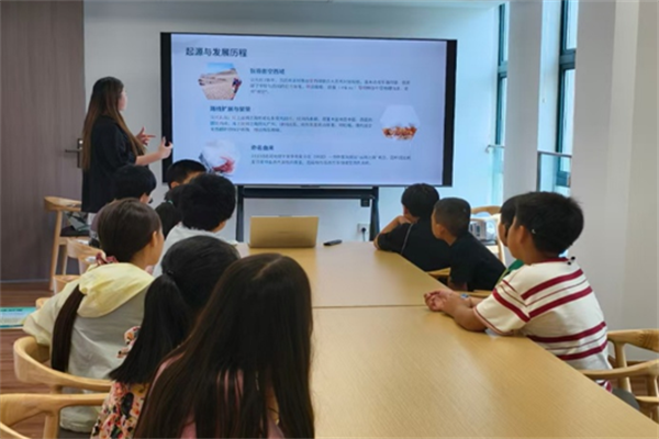 课堂上,实践队员先讲解丝绸之路历史:张骞出使西域的典故、不同时期的路线发展、“丝绸之路”名称的由来,以及其在经济、文化交流中的重要作用,为孩子们铺垫相关知识。