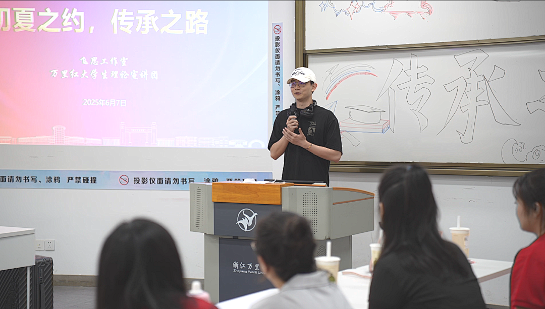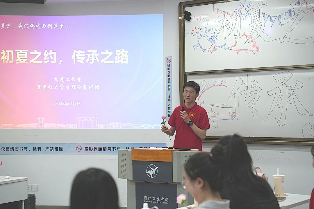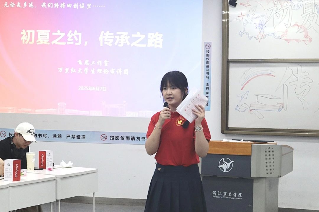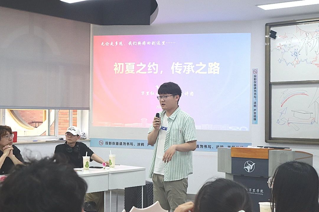6月,初夏的午后,钱湖校区53204教室,万里红大学生理论宣讲团的“初夏之约,传承之路”活动就在这温情与信念交织的氛围中悄然开启。经历一年磨砺的预备宣讲员、高年级的学长学姐讲师、各地远道而来已经毕业的前辈讲师、为“万里红”默默付出的飞思工作室的幕后工作者以及宣讲团指导老师代表们,齐聚一堂,共同度过这一难忘时刻。
