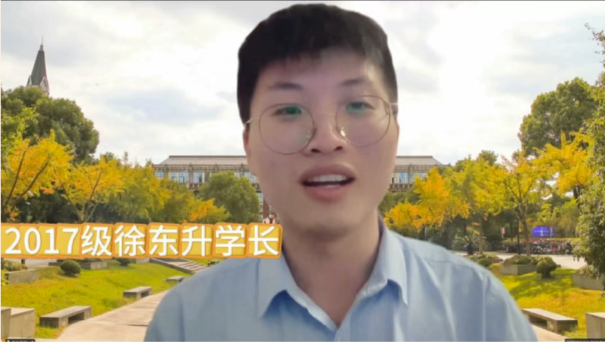 2019级学长虞家宁,作为第一届讲师团骨干讲师,曾经被《中国青年报》报道,他说要坚持自己的特长,学会自我调节,在大学这个重要的人生阶段努力提升自己。