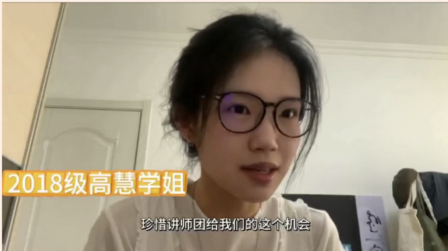 2018级学姐党敏,现在一家公司担任HR,她鼓励大家要学会放开自己,不要有因为胆怯或顾虑而放弃,勇敢地迈出第一步。