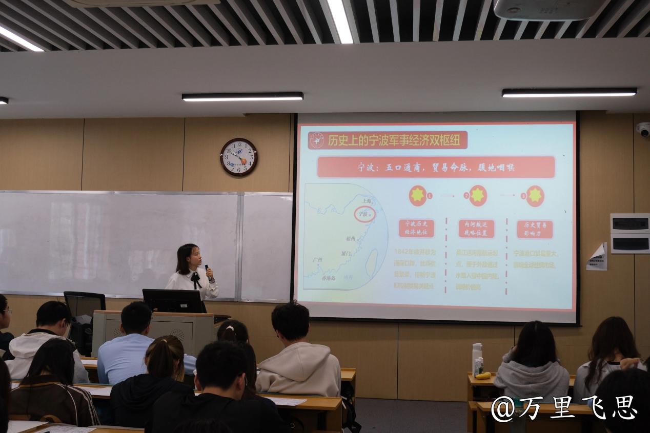 宣讲员尹欢用一堂题为“宁波:从历史烽烟到现代海防战场”的主题宣讲,引发同学们对投身国防现代化建设的深刻思考,激励广大学子学好本领、科技报国、勇担使命。