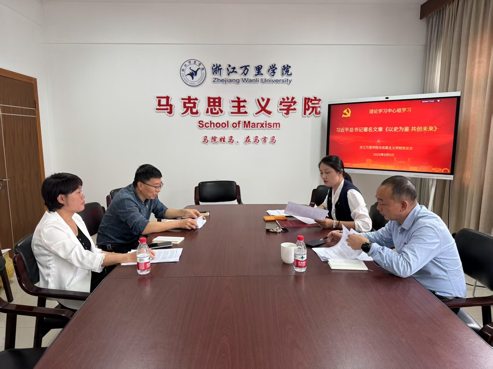 5月9日,马克思主义学院党总支理论学习中心组2025年第五次集体学习会在回龙校区行政楼209会议室召开。本次学习会紧扣时代脉搏,聚焦重要议题,由学院党总支副书记孙叶飞主持,党总支统战委员董广军领学,全体中心组成员参与学习研讨。会议学习了习近平总书记在俄罗斯媒体发表的署名文章《以史为鉴 共创未来》,总支成员分别进行了交流发言。