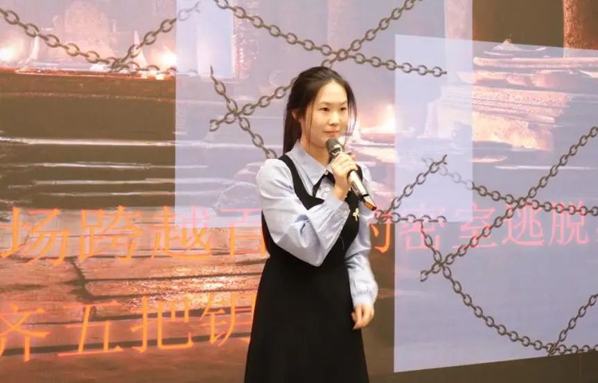 沈佳朦以密室逃脱的形式,带领全场拿到忠诚、觉醒、智慧、无畏和初心五把密钥,打开了四明大地跨越百年的精神图谱。