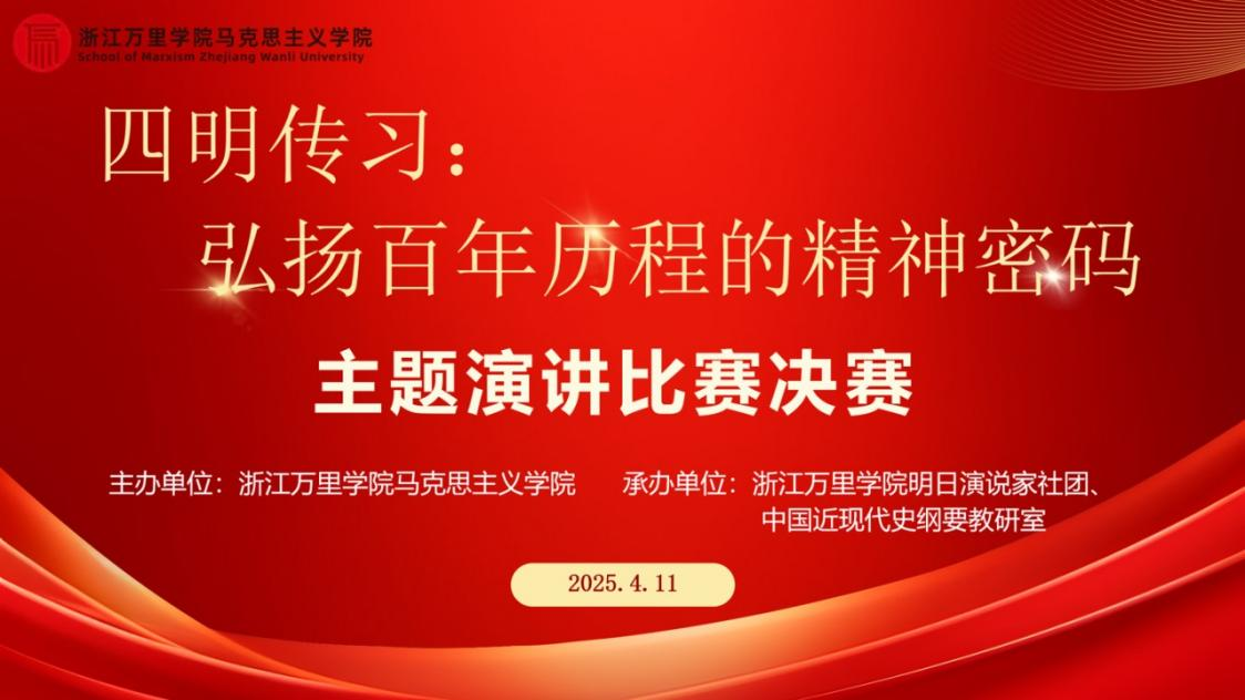 4月11日,“四明传习——弘扬百年历程的精神密码”主题宣讲决赛在回龙校区2319报告厅隆重举行。本次活动由马克思主义学院主办,《中国近现代史纲要》教研室与校明日演说家社团联合承办,经过层层选拔,9位青年学子从31名参赛选手中脱颖而出,在决赛现场展开思想碰撞与精神传承的精彩角逐。