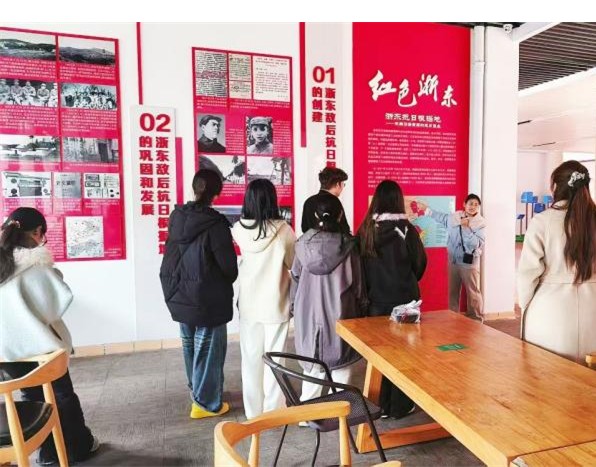学生们驻足沉思、踊跃发言。一位来自宁波本地的学生感慨道:“以前在书本上读到‘四明山革命根据地’,总觉得离自己很远。今天站在浙东抗日根据地的展板前,才真正感受到革命先辈就在我们脚下的这片土地上奋斗过,红色精神就在我的身边。”