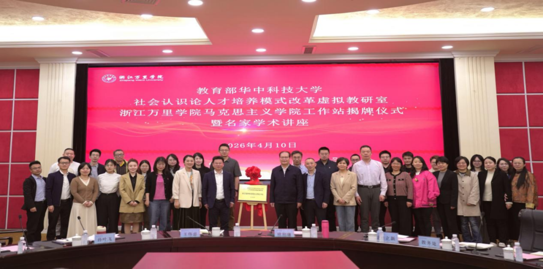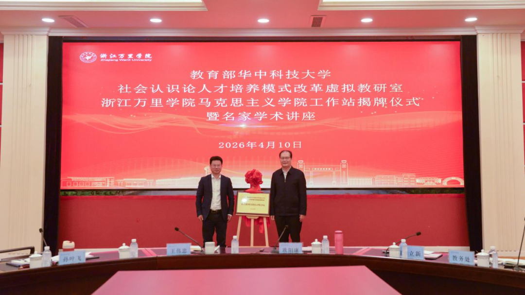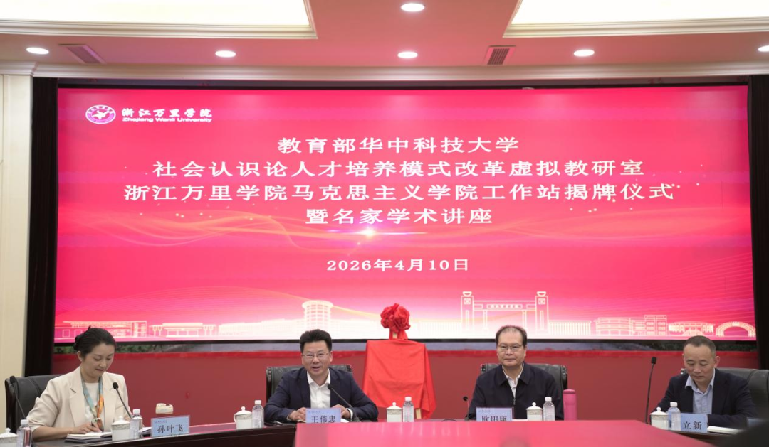 在全场热烈的掌声中,欧阳康教授与王伟忠书记共同为教育部华中科技大学社会认识论人才培养模式改革虚拟教研室浙江万里学院马克思主义学院工作站揭牌,标志着这一重要教研平台正式落地我校,校际合作开启新篇章。